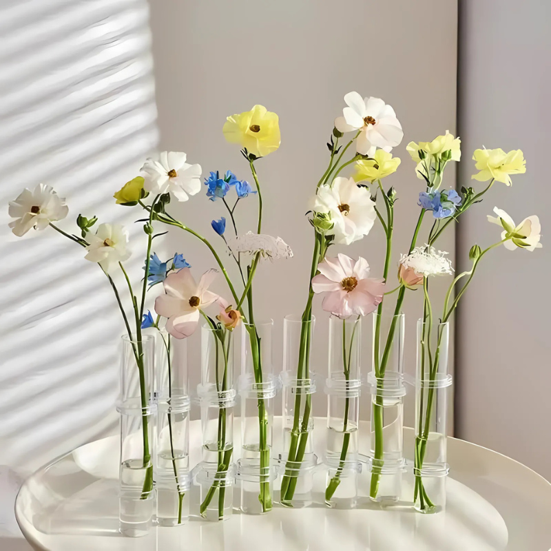 Clear, lightweight, and holds each flower perfectly in place. A refreshing change from bulky vases.
