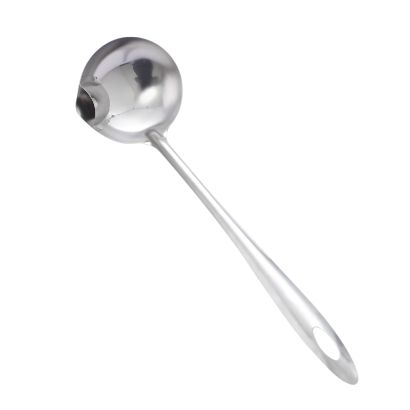 Great for ramen night. Can scoop broth neatly and leave solids behind. My goto ladle now tbh.