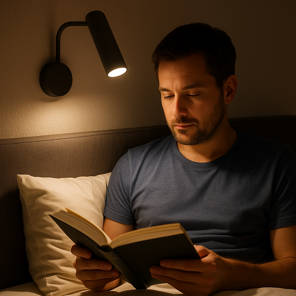 So convenient above the bed. No more bedside lamps to get knocked over.