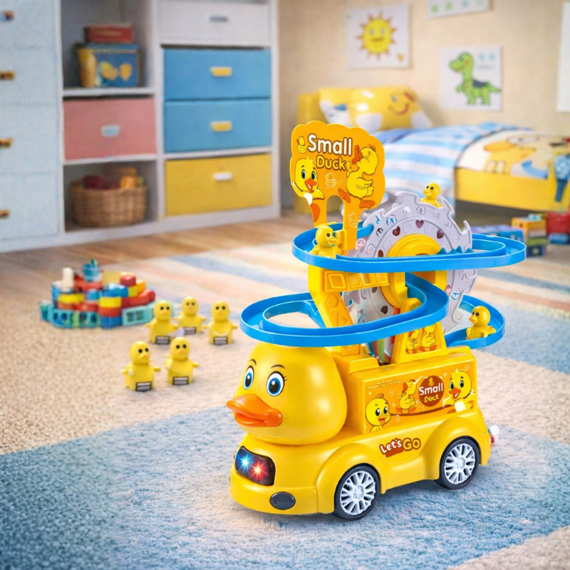 Danceroo boasts a self-operating climbing and sliding track where little ducks continually ascend the steps before gliding back down in an enjoyable loop. This ongoing action naturally grabs children’s focus, fostering observation and anticipation with every cycle. Kids remain engaged for extended periods as they track each duck’s adventure from beginning to end.