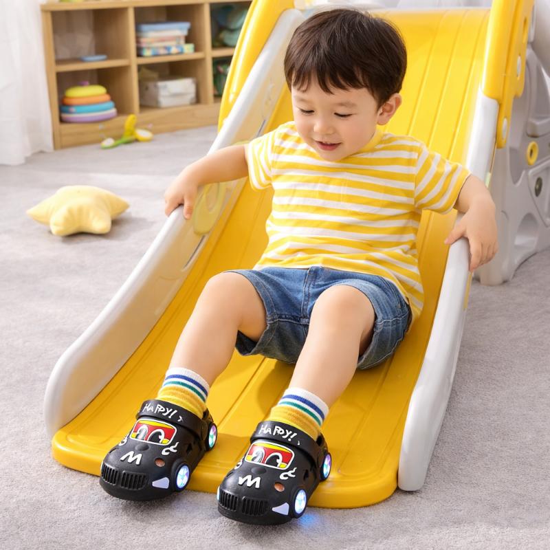 Illuminate each step as Zyloz transforms routine walks into a vibrant adventure filled with color, movement, and joy. Tailored for energetic children, these playful car-themed slippers bring excitement to both indoor and outdoor activities while prioritizing comfort and safety.
